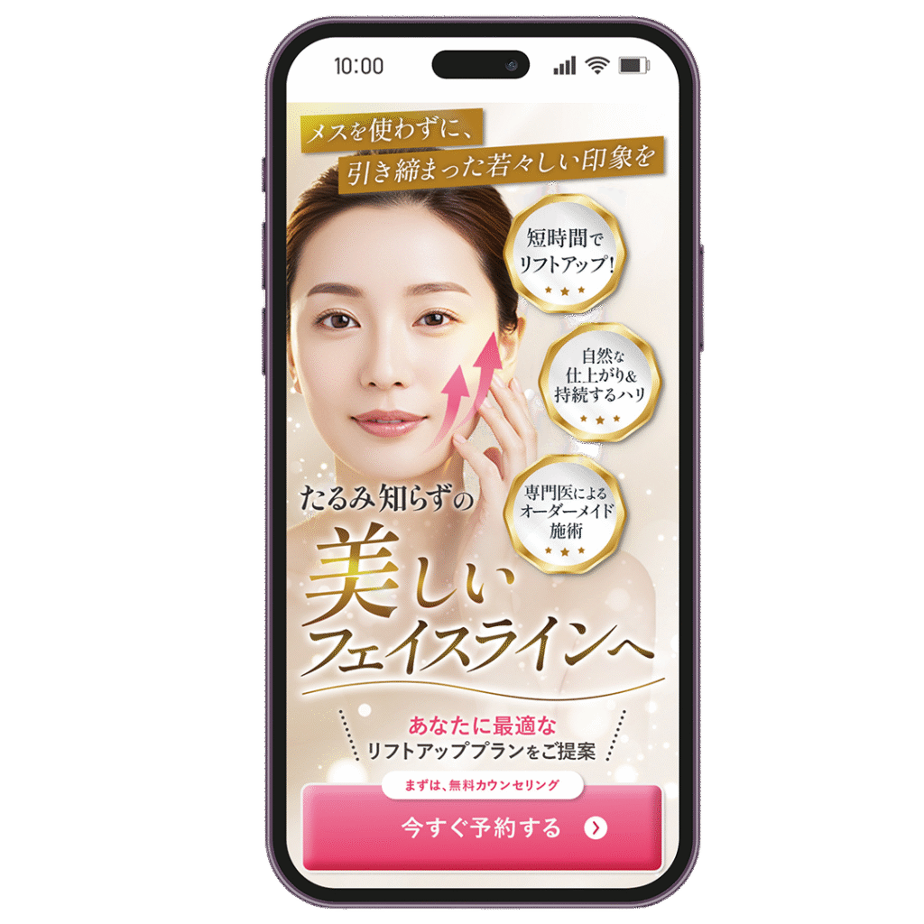 「高級感」と「効果のわかりやすさ」を重視し、ターゲットが直感的に魅力を感じるデザインに仕上げています。